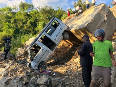 विङगरमा सवार चालकसहित ११ जना घाइते भएका छन् । विङगरको ठक्करबाट दुुलेगौंडाबाट लामागाउँतर्फ जादै गरेको ग १ ज ६५५३ नम्बरको जीपलाई समेत ठक्कर दिएको थियो । जीपमा सवार १ जना घाइते भएका छन् ।