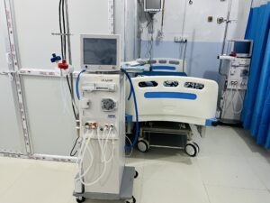 लायन्स क्लब इन्टरनेशनल डिष्ट्रिक ३२५ एल नेपालको सहकार्यमा अस्पतालमा ७ वटा हेमोडायलासिस मेसिन जडान गरिएको छ । पहिलो चरणमा एक सिफ्ट मात्रै डायलासिस गरिने अस्पतालका कार्यकारी निर्देशक डा. रामकुमार श्रेष्ठले जानकारी दिए । दैनिक पाँच जनाको निशुल्क डायलासिस हुने बताए । डायलासिसको परीक्षण गरिसकिएको छ । मेसिन लायन्स क्बलले दिएपनि भौतिक पूर्वाधार र जनशक्ति अस्पतालले व्यवस्थापन गरेको हो । ‘अस्पतालले ७ जनाको डायलासिस टिम निर्माण गरेका छौं’, उनले भने ।